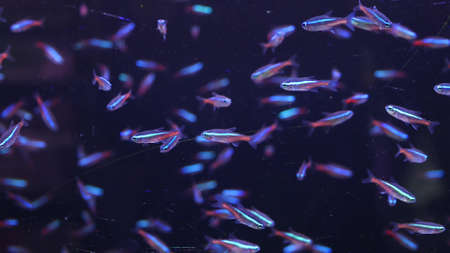 Beautiful blue tetra fish swimming in the aquarium. Aquarium fish.