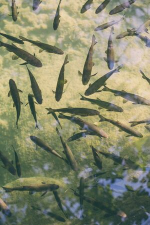 Flock of fish in the river of Croatia national park, River trout, A lot of fish in the water.