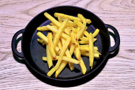 French fries in pan in restaurant. Delicious french fries