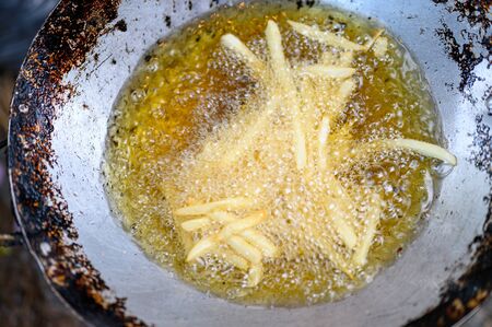 homemade french fries in hot oil