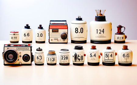 A dynamic arrangement of photography equipment and accessories displayed on a dark surface, showcasing vibrant details and modern design elements.
