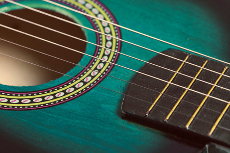 detail of classic guitar with shallow depth of field, vintage
