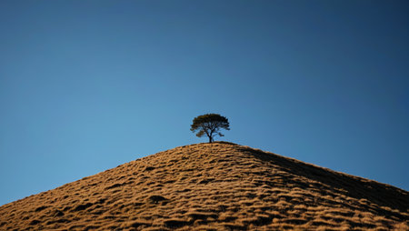 Lonely tree on a hillside in the early morning.