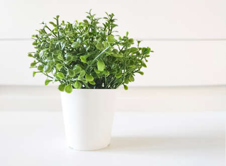 artificial plant in ceramic pot as a room decor. plants are friends. minimalism concept