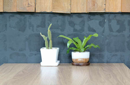 cactus in a pot wood. Different Succulents And Cactus In Pots. succulents on wooden background, copy space for your design.