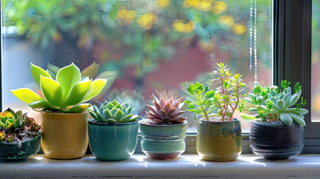 potted succulents adorning a window sill, bringing greenery indoors. Perfect plant decor