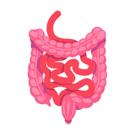 Guts semi flat color vector object. Digestive system. Full sized item on white. human organ anatomy. internal organ. Simple cartoon style illustration for web graphic design and animation
