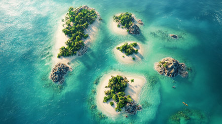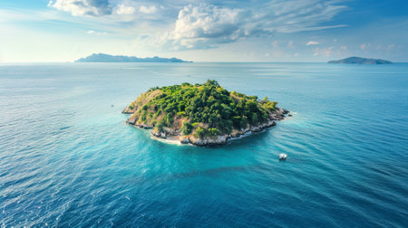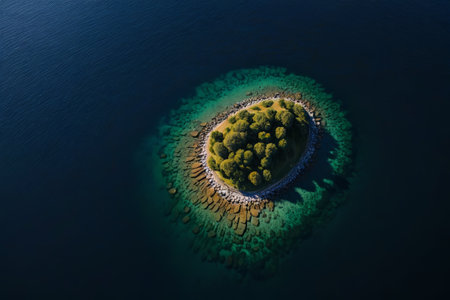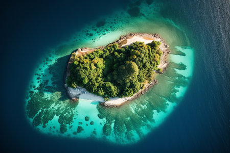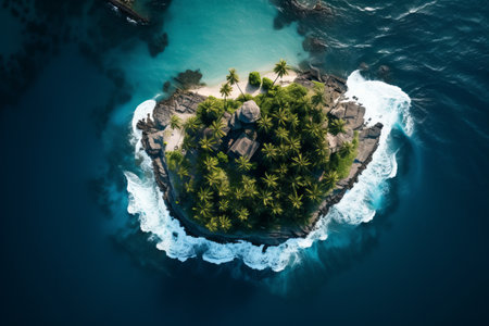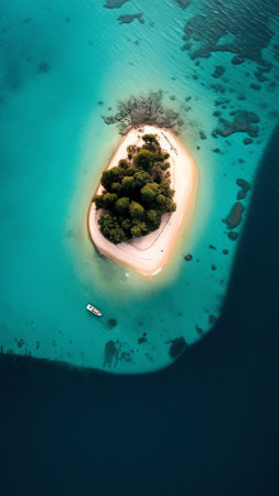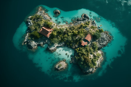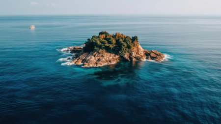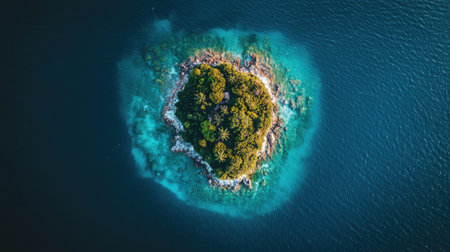 An aerial view of a small island in the middle of the ocean. AI generative image.