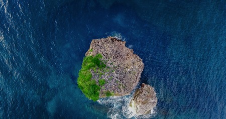 A beautiful island like being in paradise. Surrounded by the blue sea, the clear sky. Aerial view.