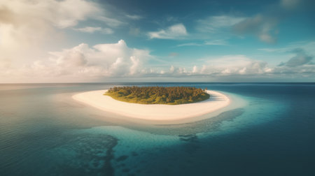 Generative AI : Panoramic aerial view of a desert island among the Atolls surrounded by the Indian Ocean Maldives archipelagos
