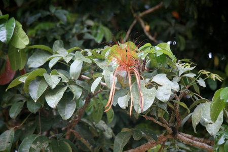 Flower of Pachira aquatica, is a tropical wetland tree of the mallow family Malvaceae. japan. High quality photo