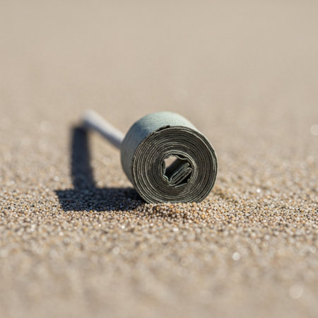 Roll of newspaper lying on the sand. Shallow depth of field.