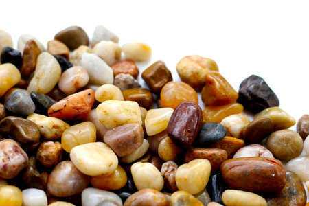 Small colorful pebbles on a white background.