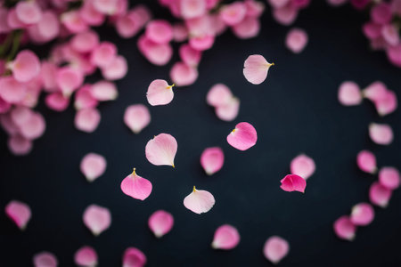 Floating Pink Flower Petals on Dark Background: Romantic and Ethereal Nature Photography