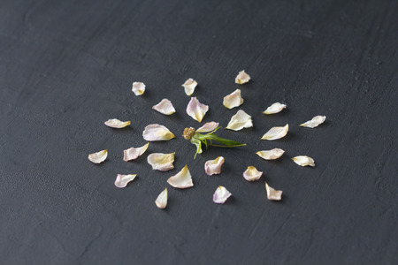 Creative flower composition made of petals. Minimal nature concept. Flat lay.