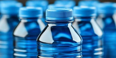 Refreshing Hydration Close Up of Blue Water Bottles for a Healthy Lifestyle and Fitness Goals