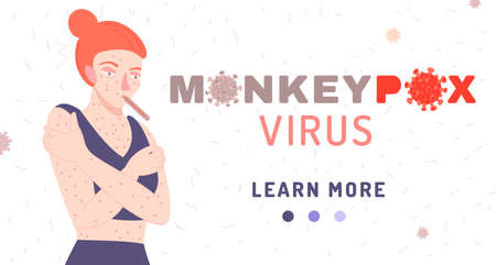 Patient with monkeypox and close-up view of monkeypox virus, 3D illustration. Monkeypox is a zoonotic virus from Poxviridae family, causes a pox-like disease