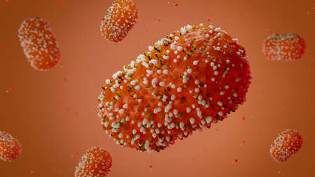 Monkeypox virus cell 3D structure member of the Orthopoxvirus genus in the family Poxviridae.3D Illustration