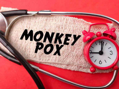 Monkeypox New Virus. Hand of the doctor in blue glove with marker and writing Monkeypox on white sheet. Monkeypox virus pandemic symbol.