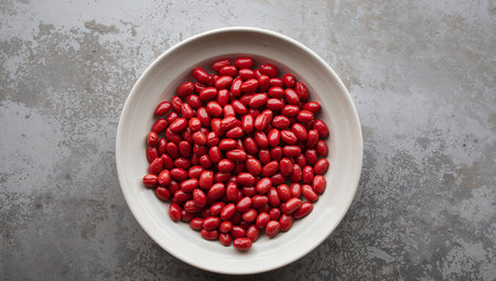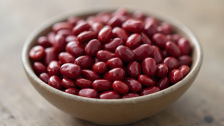 Vibrant red kidney beans in glossy ceramic bowl on neutral backdrop