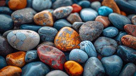 Colorful stones on the beach, close-up, macro photography