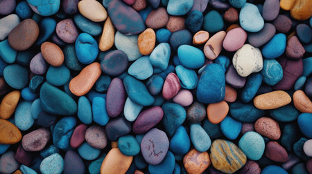 A stunning arrangement of colorful pebbles showcasing vibrant shades of blue, pink, orange, and purple. This natural mosaic creates a textured background ideal for artistic projects and designs.
