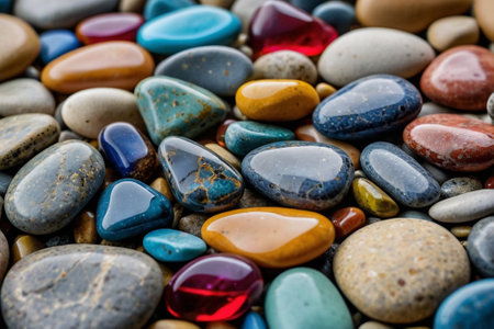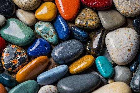 Colorful polished stones with smooth and shiny texture
