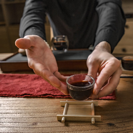 The Art of Tea Ceremony with a Rich Dark Brewed Beverage Focused on Flavor and Experience