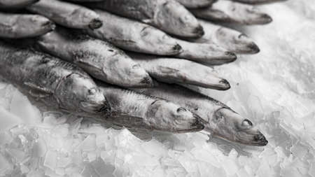 Freshly caught sardines at fish store. Food background and texture