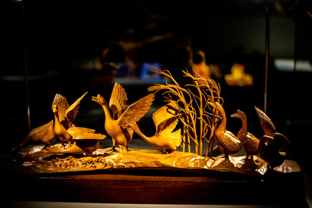 BOLOGNA, ITALY - FEBRUARY 18, 2019: lights are enlightening statues at stand in DEVOTIO Religious products and service exhibition