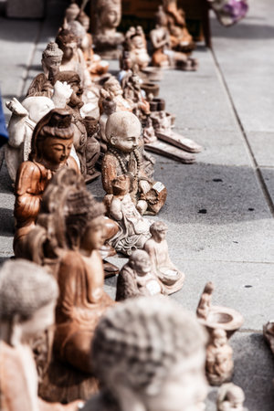 Statuettes of the Buddha for sale on the street at Kingston, Ontario, Canada