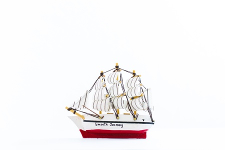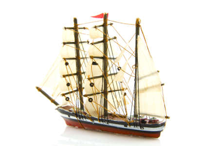 Old miniature boat isolated on a white background