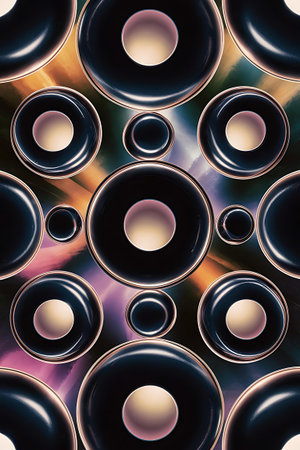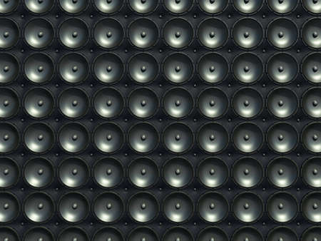 An array of speakers, varying in size, are arranged on a uniform pink surface. The composition features a repeating pattern of circular speaker designs, showcasing dark centers and tonal variations. This image could be suitable for music-related projects or used as a creative background, or for editorial purposes.
