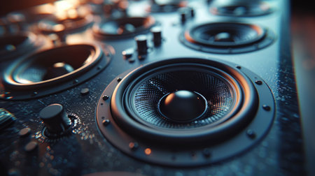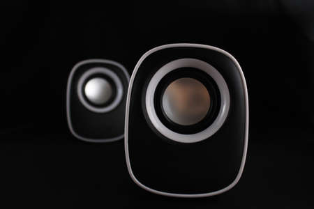 Closeup of black premium loudspeaker for music and home theater system with color mood and tone style