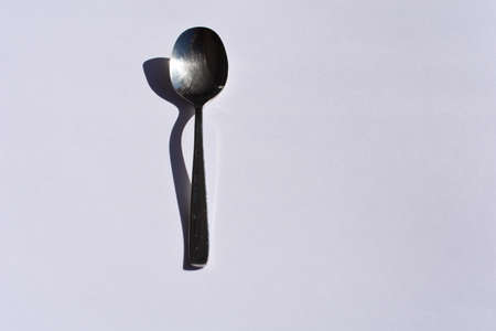 A sleek silver spoon captured against a minimalist background, showcasing its polished surface, subtle reflection, and soft shadow, perfect for culinary themes.