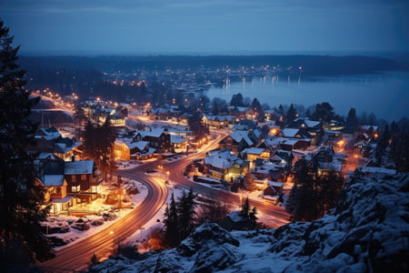 Generative AI : Aerial view of houses and large fenced area in Soukolojarvi Sweden