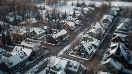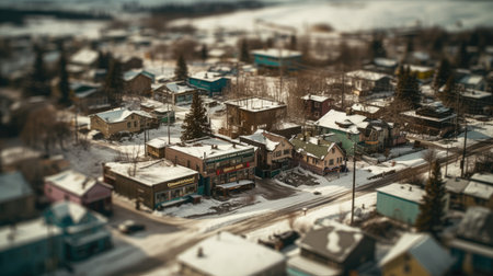 Aerial view of a small town in winter. snowy landscape. tilt shift