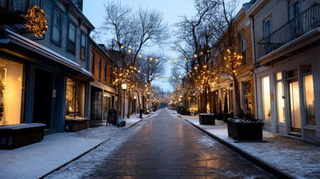 Sunset street view in charming town urban landscape photography peaceful atmosphere