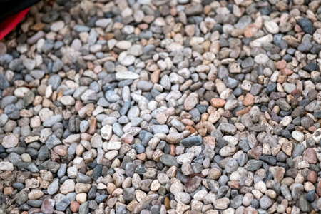 The backdrop concept of multicolored pebbles laid together on the floor.