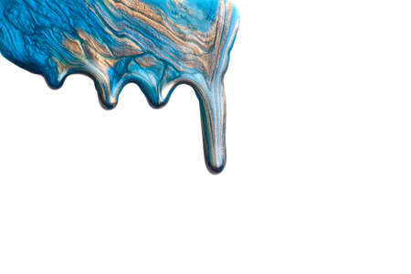 drops of blue pearlescent varnish on white paper. Macro. Drops of different shapes.