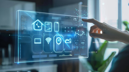 futuristic interface on virtual screen of smart home with hologram