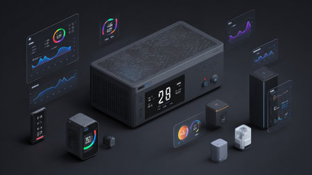 modern tech devices featuring a central gadget and various accessories