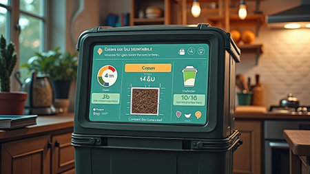 Composting machine in modern kitchen with digital display for efficient waste management. That the image is generated using AI.