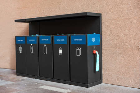 Modern trash bins for waste segregation, Management recycle garbage, Separate waste collection.
