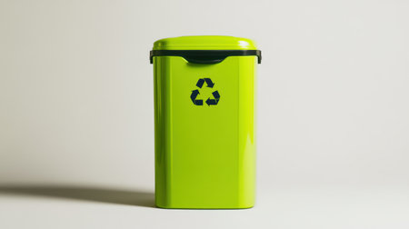 A vibrant green recycling bin with a clear recycling logo, isolated on a plain white background.