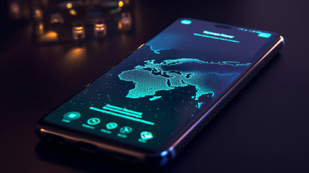 Generative AI : Globalization electronic funds transfer concept background with mobile smart phone