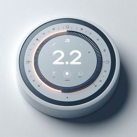 Modern round thermostat showing temperature allowing to increase or decrease setting