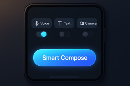 Human hand interacts with an AI virtual assistant on a modern smartphone.