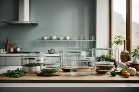 zero-waste kitchen with stainless steel pots, pans, and gadgets for cooking fresh and healthy meals, created with generative ai