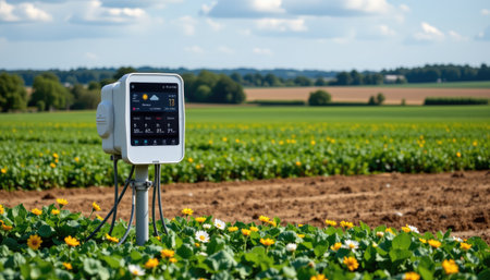 A digital monitoring system used in agriculture, overseeing healthy crops in a field setting